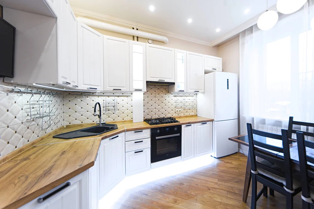 Ремонт выполнен 1 год назад в светлом классическом стиле с использованием качественных материалов. Делали для себя. Тёплые полы, качественная мебель, выверенная геометрия, мягкие нейтральные тона. Квартира полностью готова к проживанию.